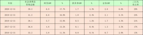 图9:2016-2020年社零及电商GMV数据,来源:锦缎研究员整理
