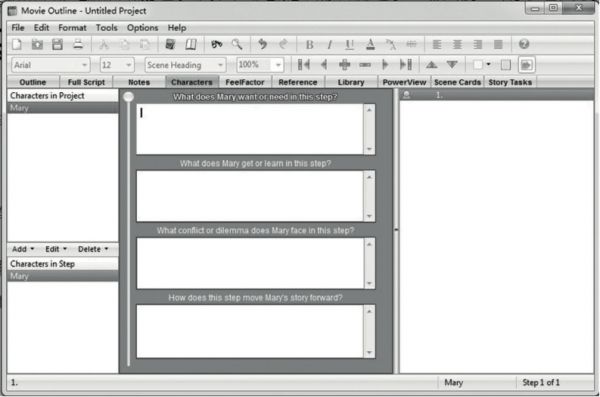 另一款软件Power Writer则可以与Power Structure搭配使用,Power Structure只是帮助编剧想清楚在创作之前的思路,比如人物设计、场景、故事发生背景、冲突等戏剧元素,而Power Writer更适用于大纲的写作阶段。