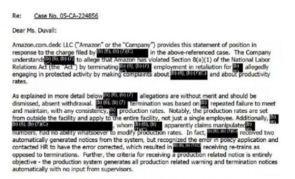 此前因为与巴尔的摩的一名前员工存在劳动纠纷,亚马逊向美国全国劳资关系委员会出示了开除员工的名单和理由。The Verge通过《信息自由法案》获得了这一文件。