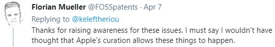 网友@FOSSpatents:谢谢你提高了大众对这些问题的认识。我必须说,我从未想过在苹果的管理下会让这些事情发生。