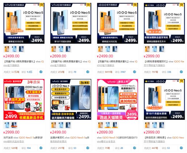根据天猫平台相关数据显示,一代的拯救者电竞手机的最高销量仅有寥寥数十笔,相比之下,新发布的IQOO Neo5,月成交已经过万,黑鲨4和红魔6也分别达到了数千笔的月成交。