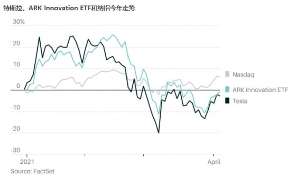 纳指要想摆脱跑输局面必须从2020年最热门的一些股票中借力,但目前无论是特斯拉还是ARK Innovation ETF都没有显示出要参与接下来一轮涨势的迹象。