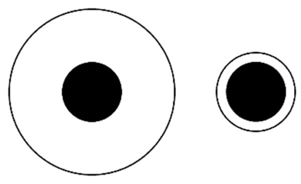 在德勃夫大小错觉(Delboeuf illusion)中,两个位于中心的圆直径相同。在人类眼中,被较小的圆环包围的那个圆,看上去更大。两个研究发现,狗狗似乎并不会感知到任何区别。THE SCIENTIST