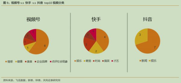 据天风证券报告显示,目前抖音上的头部内容大多以娱乐和新闻内容为主,而视频号的领域则更加广泛。