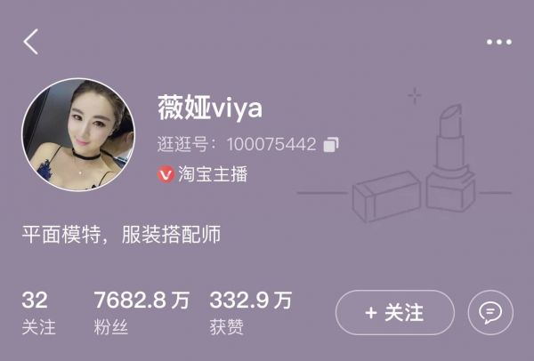 如薇娅viya,她的淘宝粉丝数为7682.8万,仅她一人引导的成交量即可抵得上一个垂直电商平台一年的GMV。口红一哥李佳琦的淘宝店铺有520.9万粉丝,曾在淘宝直播中创下了五分钟卖1.5万支口红的记录。