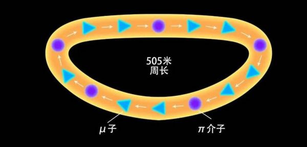 π介子绕着一个周长为505米的环运动,直到几乎所有的π介子都衰变成μ子。