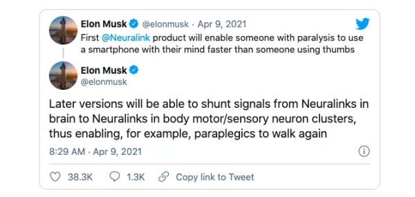 马斯克在推特上进一步表明了未来 Neuralink 的目标|网络截图