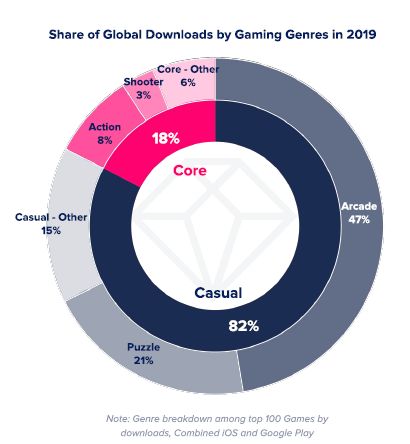 注:2019年谜题类游戏的全球下载量,占全部游戏的21%(来源:App Annie )