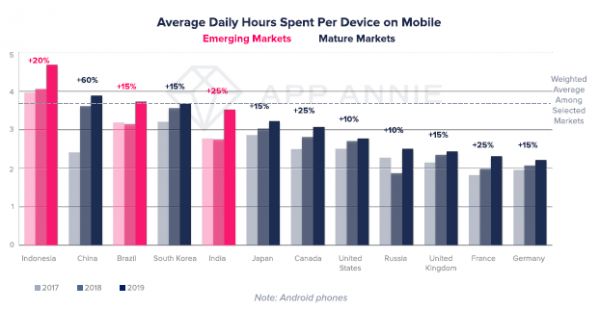 注:2017-2019年,安卓手机端用户日均游戏时长增长情况(来源:App Annie )