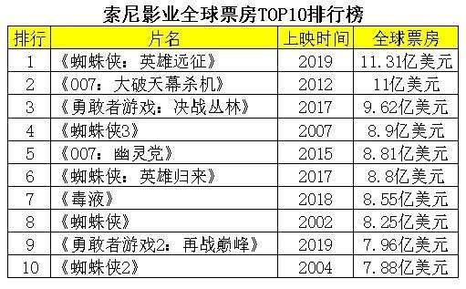 再度拯救索尼影业的还是《蜘蛛侠》,2017年这部漫威宇宙电影的问世,让索尼开始进入盈利期和第二个黄金期,之后《勇敢者游戏》系列两部的全球票房分别达到9.62亿美元、7.96亿美元,“索尼漫威宇宙”衍生片《毒液》也在2018年入账8.55亿美元。