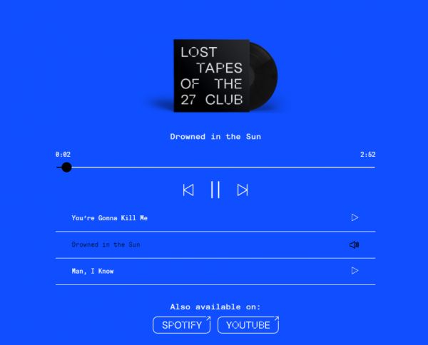 经过一年的算法优化,和半年的录音、制作,Over The Bridge 发布了四首单曲,并收录在专辑《 Lost Tapes of the 27 Club》中出版。