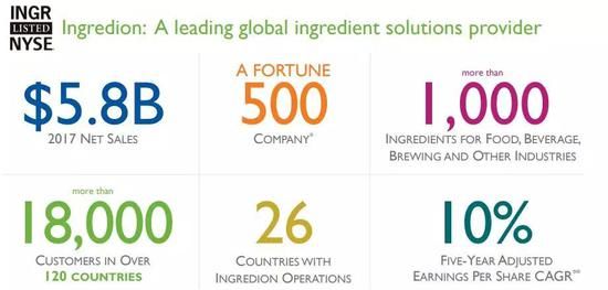 Ingredion是一家全球领先的原料解决方案供应商,为120多个国家的客户提供服务。该公司每年的净销售额接近60亿美元,主要是将谷物、水果、蔬菜和其他植物原料转化为增值原料和生物原料。
