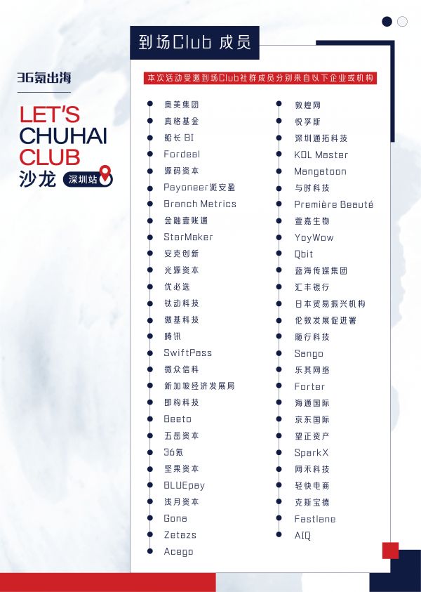 对于没能到现场进行交流互动的 LET'S CHUHAI CLUB 社群成员,我们还将在未来持续推出更多相关活动。本次活动将在36氪直播间同步播出,点击此处收藏活动直播链接。欢迎持续关注36氪出海。
