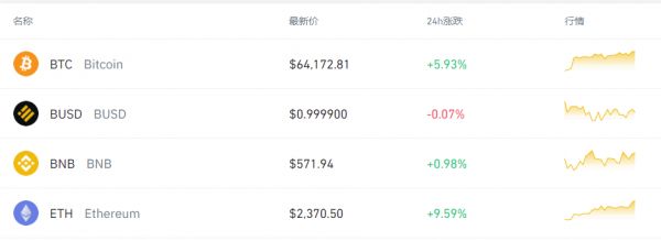 4月14日,比特币接连突破62000美元、63000美元、64000关口,最高触及64200美元,创下历史新高。截至发稿,比特币价格为64119美元,日内涨幅超过5%。