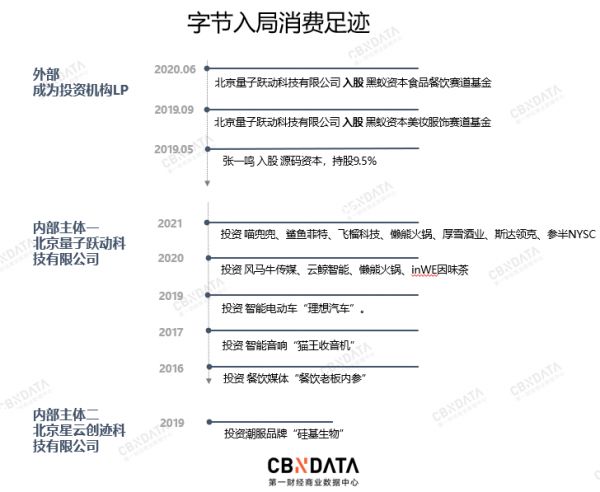 字节跳动从2016年试水消费赛道,到2019年正式入局消费,再到2020年之后高频率出手,字节跳动的“消费观”逐渐形成和成熟。作为“字节跳动系”的消费投资主体,北京量子跃动科技有限公司也随之频繁出现在消费投融资的视野。