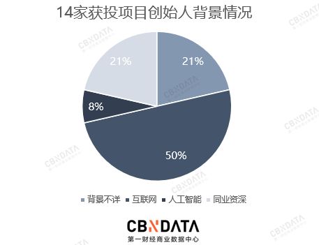 14个获投项目的创始人中,有7个项目创始人是互联网从业背景,占比过半;3个项目创始人拥有资深的同业背景;1位创始人拥有人工智能从业背景。风马牛传媒、硅基生物、厚雪酒业的创始人尚未查询到有效信息。