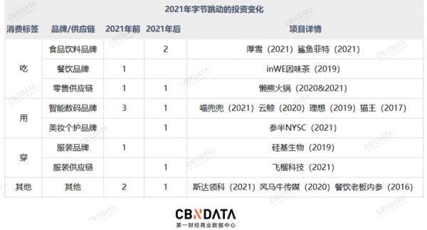 1、字节跳动出手消费的投资频率提升了5.6倍
