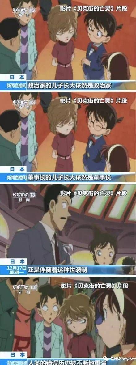 2012年12月,安倍晋三当选日本首相。中央电视台在报道这名出身日本官宦世家的首相时,直接引用了《名侦探柯南》的剧情节选,借其中主角灰原哀之口,表达了对日本政治界的讽刺。