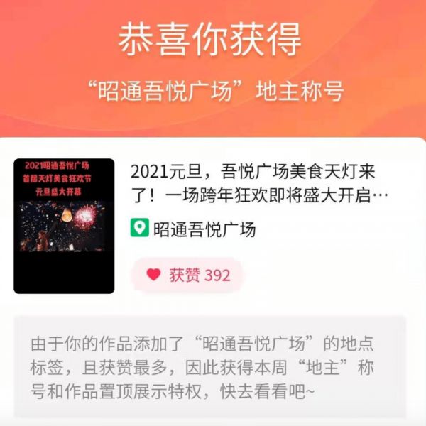 随后,抖音在此基础上推出“DOU地主热门榜”,该榜单的目的,是根据用户发布带地点定位的视频点赞数,自动生成一周内发布的该地点热门视频榜单,榜单的视频作者可成为“地主”,并能够享受短视频在该榜单下展示一周的特权。实质上,是为了帮助本地商家增加自己门店的帮广度,从而进行定向引流。