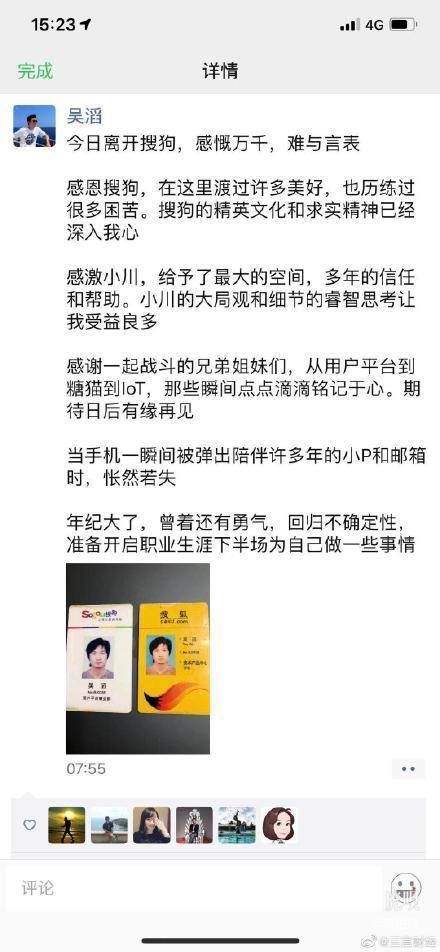 搜狗副总裁、搜狗IoT事业部负责人吴滔在朋友圈宣布今天正式离开搜狗,未来将回归不确定性,准备开启职业生涯下半场,为自己做一些事情。