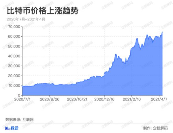 为什么显卡的价格会疯狂上涨?这或许跟目前比特币的价格高涨有很大关系。从去年7月至今,比特币的价格从1万美元狂飙至现在的6.4万美元,并且还在不断向上狂飙。