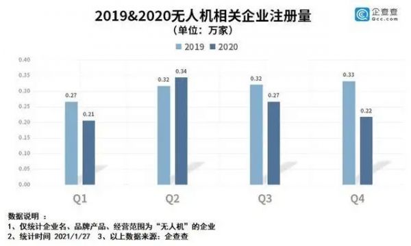 在2017年宣布销售额达到180亿元之后,大疆从2018年起再也没有公布过业绩数据。据企查查相关数据,自2018年以来,我国无人机相关企业新注册量已经连续三年突破1万家,而这其中也不乏小米、腾讯、谷歌、索尼等科技巨头的身影。