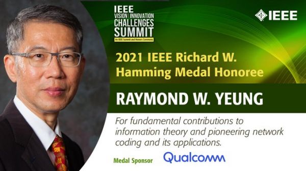 IEEE 将2021年IEEE Richard W. Hamming奖颁给了网络编码创始人杨伟豪教授。