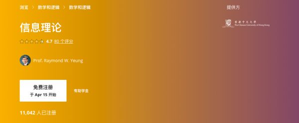 2014年春,杨教授在Coursera开课,教授信息理论课程,这是历史首个关于信息论的MOOC课程,有超过25000名学生上课。