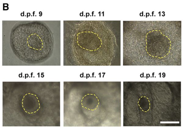 第19天,仅有3枚嵌合体胚胎存活,这也是目前体外培养食蟹猴胚胎技术的极限。