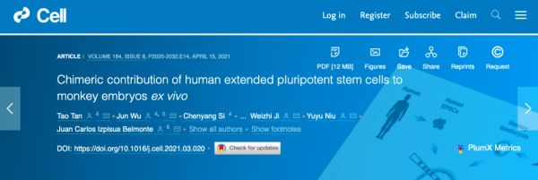 但魔幻现实已经成现实。今日(4月16日),由中国和西班牙的科学家共同领衔的一支国际研究团队让首次成功在体外培养出由人类干细胞和猴细胞组成的“嵌合体”(chimeras)胚胎,并且能够让这种胚胎在体外存活20天。论文已在顶级学术期刊《Cell》上成功发表。