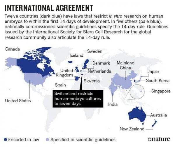 在至少12个国家,这个限制被编写在管理辅助生殖和胚胎研究的法律中。