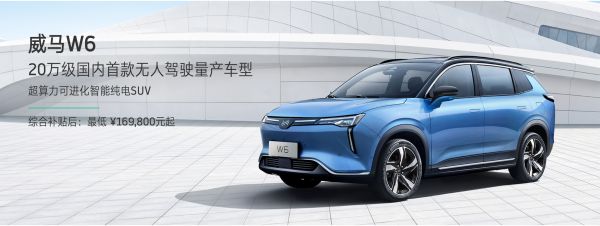 36氪获悉,4月16日,威马汽车国内首款无人驾驶量产车型W6正式上市,售价16.98万元起。作为国内首款L4级无人驾驶量产车型,威马W6搭载AVP无人自主泊车系统。车辆可自动驶入停车场,自动搜索车位,自动泊入车位,真正实现“召之即来挥之即去”无人泊车。