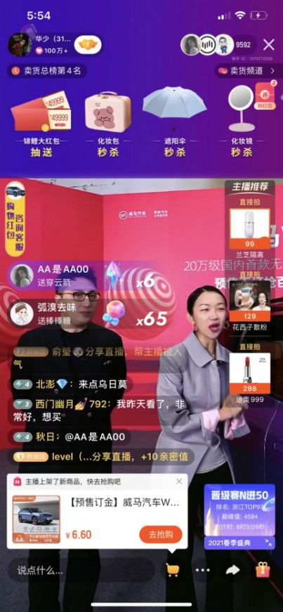 3月16日,华少直播间通过直播上架威马汽车预售礼遇券,吸引千余用户下单,最终共有716位用户通过直播间成为威马W6准车主。可以说,这次直播是对快手“以运营推进服务电商”新模式的一次完美示范。