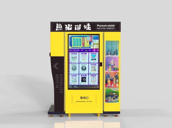 熊猫小站采用无人自助的模式运营,能够满足亲子家庭的多维度需求,用户不仅可以购买母婴用品,还可以在熊猫小站租赁童车。每台设备大约可以放置175个货品,同时容纳3-6辆童车。
