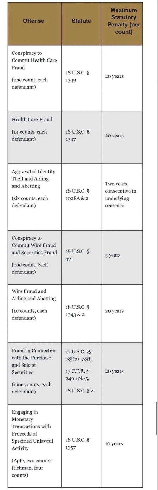 另据加州地方检察官的调查,uBiome 从医疗保险公司试图骗保高达3亿美元,其中事实非法所得3500万美元。SEC 正在寻求法律手段让 Richman 和 Apte 退还非法所得。2019年10月,uBiome宣告破产。现在,加州地方检察院对这两位创业大盗提起的刑事诉讼,数罪并罚最大可判处97年的牢狱之灾。