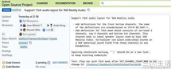 据悉,目前在Android Open Source项目的一系列代码中,就提到了索尼的360临场音效,这些代码是由索尼与谷歌的开发者提交,将部分用于为Android的MPEG4Extractor系统组件提供MPEG-H 3D音频解码器支持,而其他的则会服务于360临场音效。在有关上述代码的评论中,索尼软件工程师Kei Murayama表示,“这是谷歌与索尼在‘AndroidOS360RA支持’会议上提到的补丁之一。”