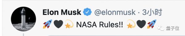 结果宣布后,马斯克表示:“NASA Rules!!”并把头像换成了星舰飞船。