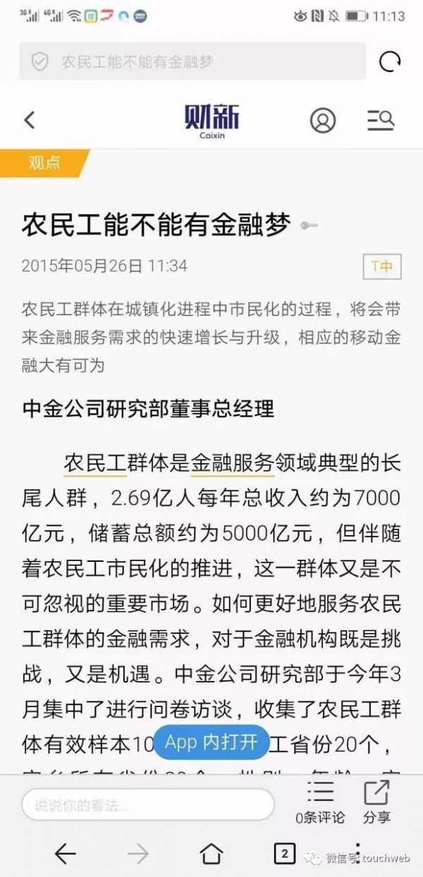 在毛军华这篇文章中,他提出农民工群体是金融服务领域典型的长尾人群,2.69亿人每年总收入约为7000亿元,储蓄总额约5000亿元,但伴随着农民工市民化的推进,这一群体又是不可忽视的重要市场。
