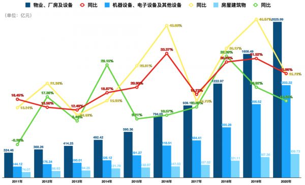年报显示,华为最近三年的物业、厂房及设备的规模确实在加大,特别是其中的机器设备、电子设备及其他设备,2018年和2019年的增速分别达到了35.27%和45.97%,2020年回落至25.79%。