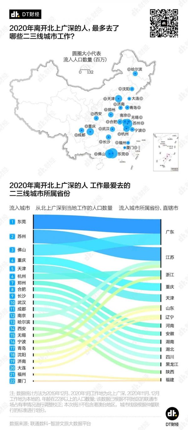 从城市吸引力的角度来看,到底是哪些二三线城市用实实在在的工作机会,接收了最多的北上广深打工人?哪些城市最能满足他们的发展需求?DT财经和联通数科的数据智能团队一起研究了这一问题,希望给同样考虑这些问题的年轻人一些参考。