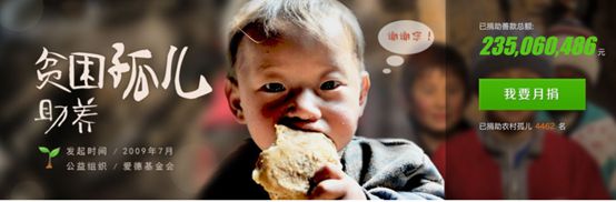 爱德基金会的“贫困孤儿助养”成为腾讯公益平台上最早破亿的项目。