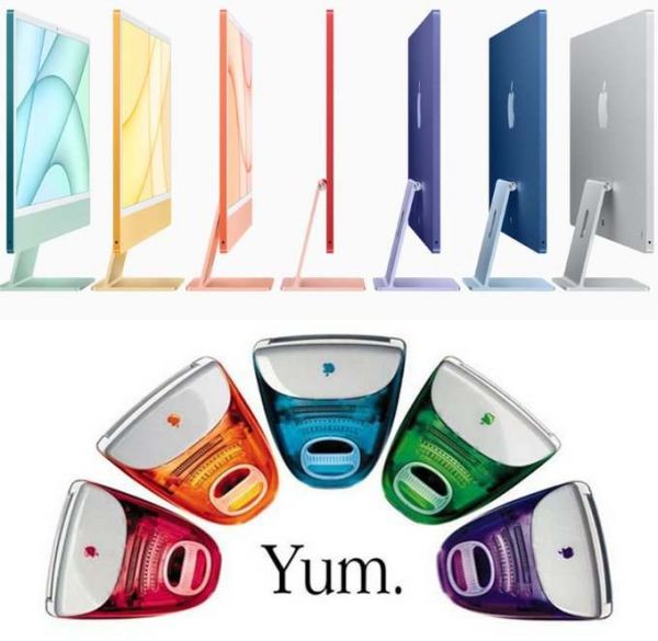 我认为这是 iMac 脱离 x86 计划的一部分。他们想从潜意识层面告诉你:“俺们的新款 iMac 可是鸟枪换炮了诶。”新配色也能够给人新鲜感。