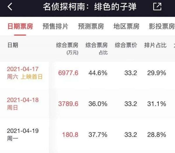 可以感受到,虽然《绯色的子弹》在排片上已经达到了最大势能,但在票房上没有完成历史性的突破。这一部分原因是由于市场环境的影响,票房市场的整体冷淡不可逆转。一部分原因则是《柯南》剧场版固有的票房体量与《绯色的子弹》的口碑问题。