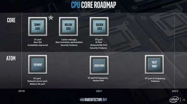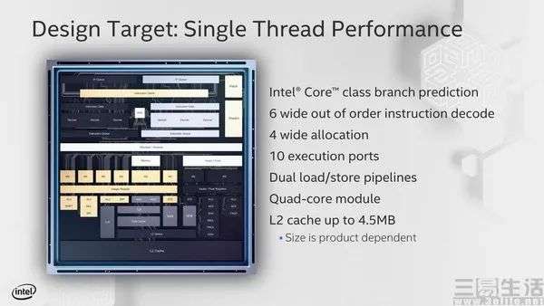 不仅如此,曾经被许多朋友嫌弃的凌动,甚至最快在今年内就会重返主流消费市场。在Intel下半年即将发布的第12代酷睿处理器中,我们将会见到神奇的“大小核”设计,其中大核心架构源自11代TigerLake架构的换代版本,而小核心的架构则正是前文中提到的Tremont凌动处理器后续版本。