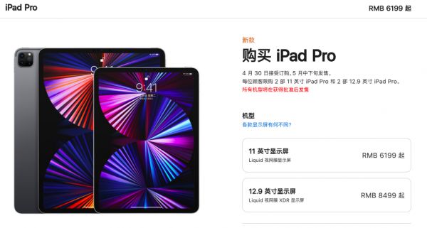 售价方面,11英寸的iPad Pro国内售价6199元起,而12.9英寸的iPad Pro国内售价8499元起。
