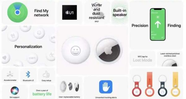 另一项颇受期待的产品“防丢追踪器”AirTag,这一次终于千呼万唤始出来,支持自定义镌刻emoji,支持小配件,用户可以将它绑在背包或其他物品上,通过iPhone快速找到。