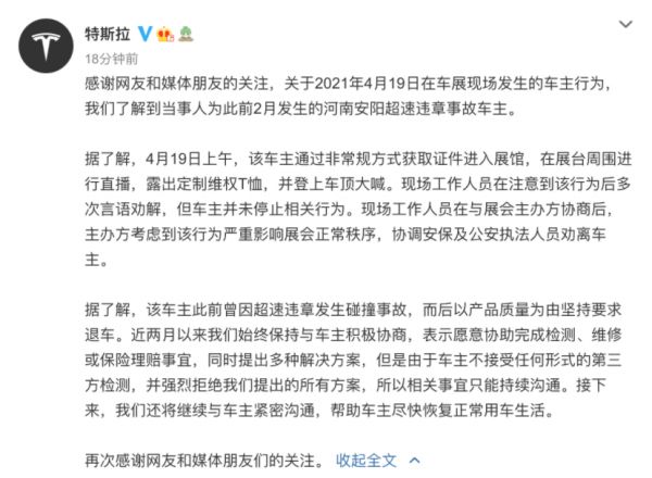 △特斯拉声明