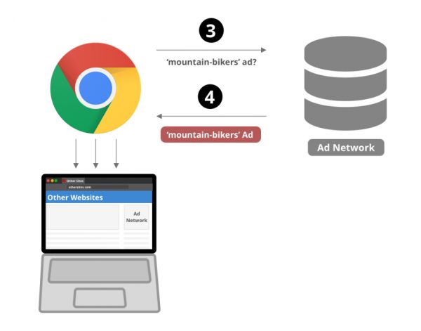 (3)浏览器注意到该用户经常浏览展示该Ad Network广告的网站,并且已知晓Ad Network已经能读取到该用户加入“山地车兴趣组”的信息,因此浏览器请求Ad Network展示针对该兴趣群组的广告。
