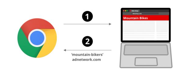 (2)通过API,网站向浏览器请求将该用户添加到其预先设定的“山地车兴趣组”中,同时其Ad Network也向浏览器发出请求,准许其读取该兴趣小组。(Ad Network仅有读取功能,无法储存该兴趣群组数据)