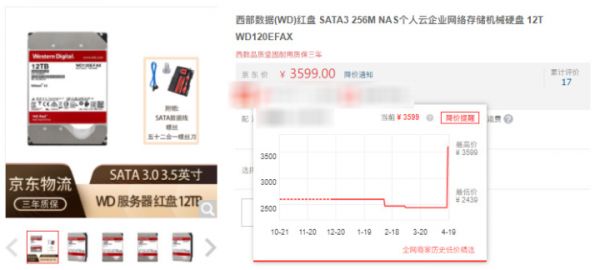 西部数据红盘 12TB 价格走势